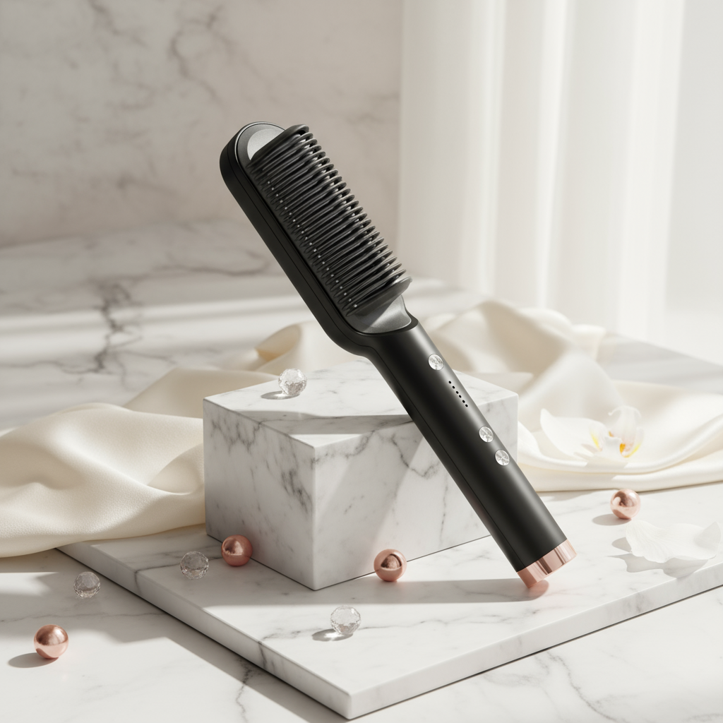 El cepillo plancha alisador combina la eficacia de una plancha con la comodidad de un cepillo, ofreciendo un alisado rápido, uniforme y sin complicaciones. Su diseño permite desenredar y alisar el cabello al mismo tiempo, logrando un acabado suave, brillante y profesional desde casa.