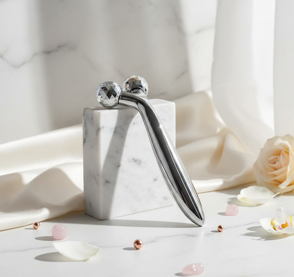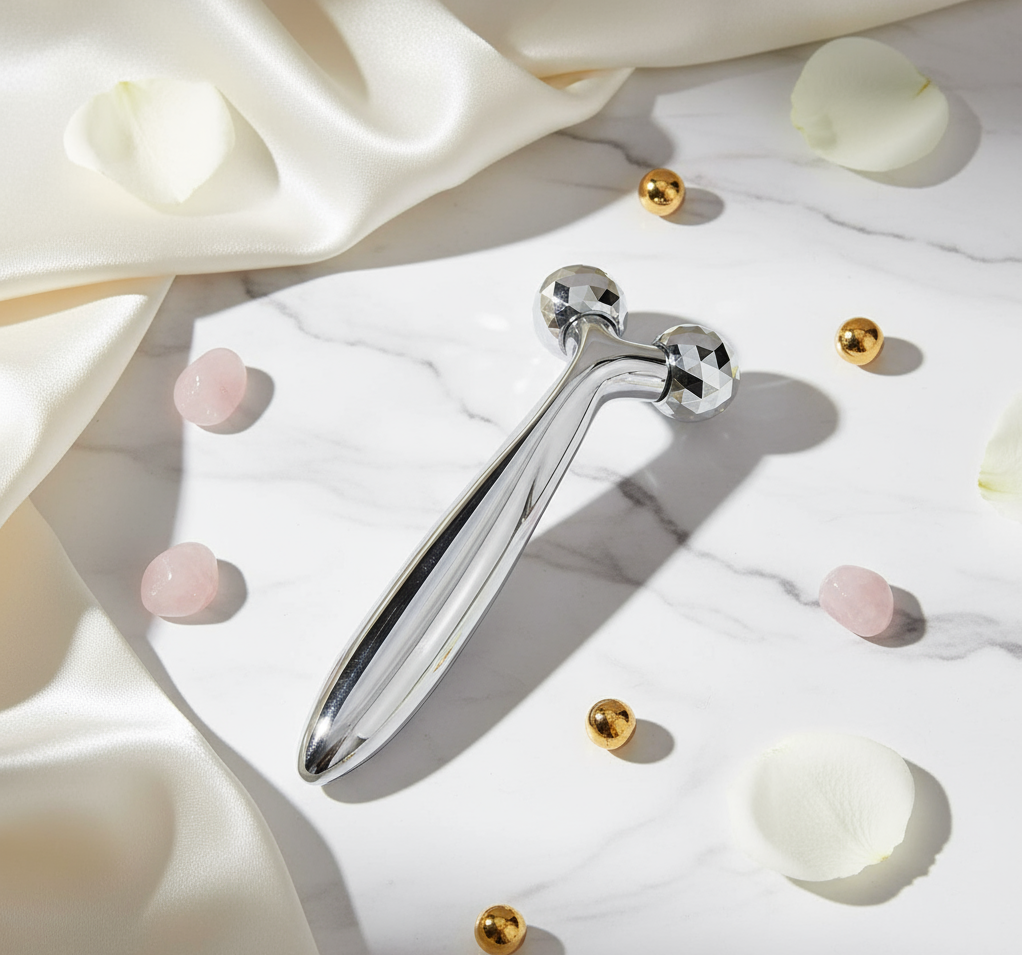 Es una herramienta manual diseñada para mejorar la circulación y tonificar la piel de forma natural. Gracias a sus cabezas giratorias en tres dimensiones, se adapta a los contornos del rostro, ayudando a reducir la hinchazón, relajar los músculos faciales y mejorar la firmeza de la piel.