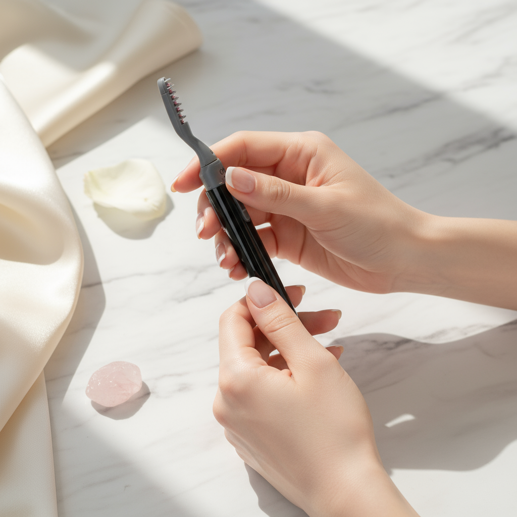 El rizador de pestañas térmico es una herramienta de belleza diseñada para realzar la curvatura natural de las pestañas de forma rápida y duradera. A diferencia de los rizadores tradicionales, funciona con calor suave, similar al de una plancha de pelo pero adaptado con total seguridad para la zona ocular.
