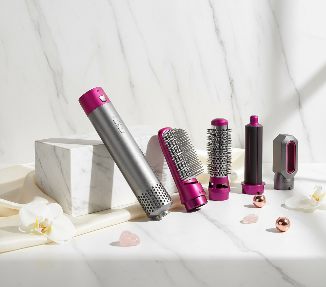 2. Elige el accesorio según el estilo que desees: concentrador para alisar, difusor para rizar, cepillo redondo para volumen, entre otros.